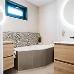部屋からは庭園景色が見えます. Oesterpad 56 - Het Oude Nieuwland Ouddorp - Not For Companiesは車椅子のまま入れるシャワ-,個別のトイレ とバスタブがある2室のバスル-ムを提供します.