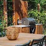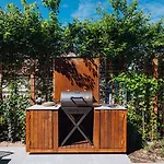 De villa biedt een ingerichte keuken, evenals een eethoek en een eethoek buiten om te koken en te dineren. Gasten kunnen gebruik maken van de zelfvoorzienende opties ter plaatse, waaronder een waterkoker, een koelkast en een oven, samen met koffie- en theevoorzieningen.
